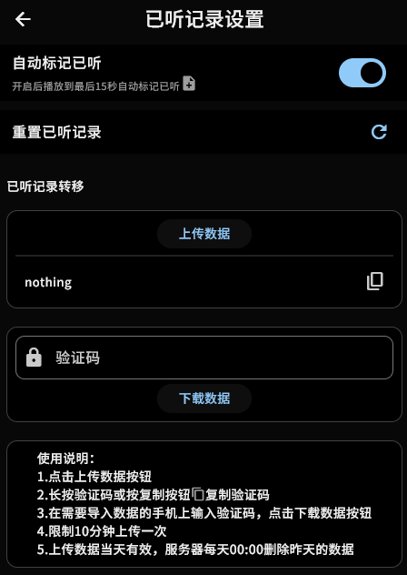 已听按钮,点击后此首音频会添加到已听记录,具体请查阅已听记录说明。