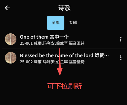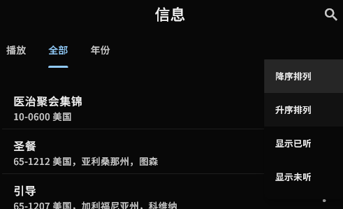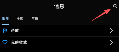 选择全部、年份、诗歌、收藏、播放列表、最近播放,点击里面的列表后程序会自动建立播放列表并播放音频。