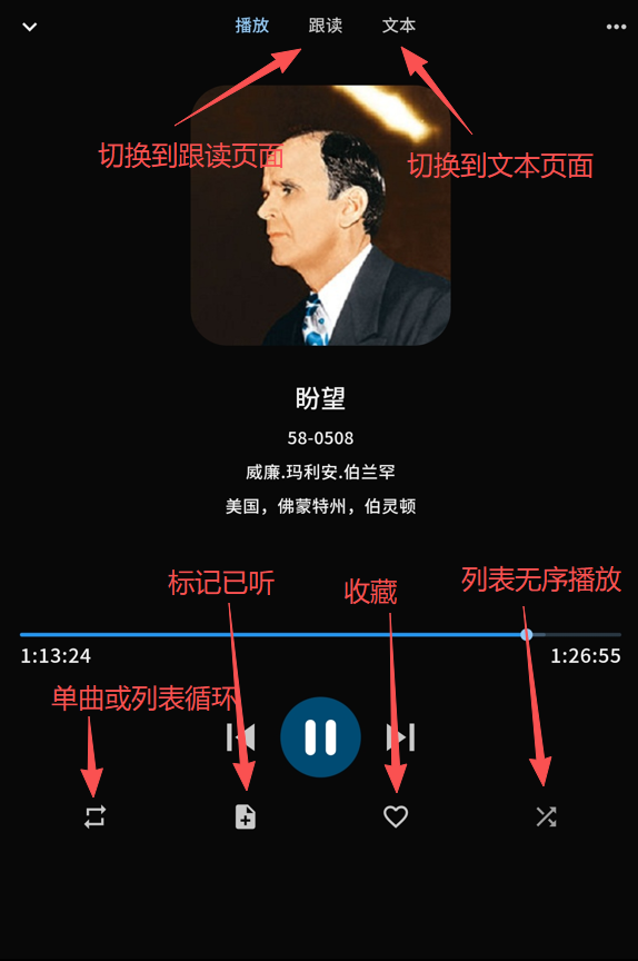 播放器可手动或自动标记已经听完的信息。(诗歌无此功能)
