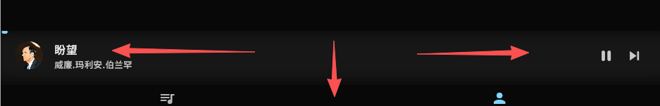 按住往左滑动跳到上一首,往右边跳到下一首,往下滑动停止播放清理播放列表(window版本无此功能)